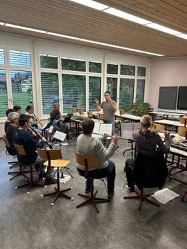 Vom 26. bis 28. September 2025 fand unser Probeweekend im Schulhaus Matt statt. Am Samstag stand zuerst die Registerarbeit auf dem Programm: Jedes Register hat separat an den Stücken gefeilt und die Details geübt. Am späteren Nachmittag vereinten wir die einzelnen Stimmen in einer Gesamtprobe – ein schöner Abschluss eines konzentrierten Probentages.